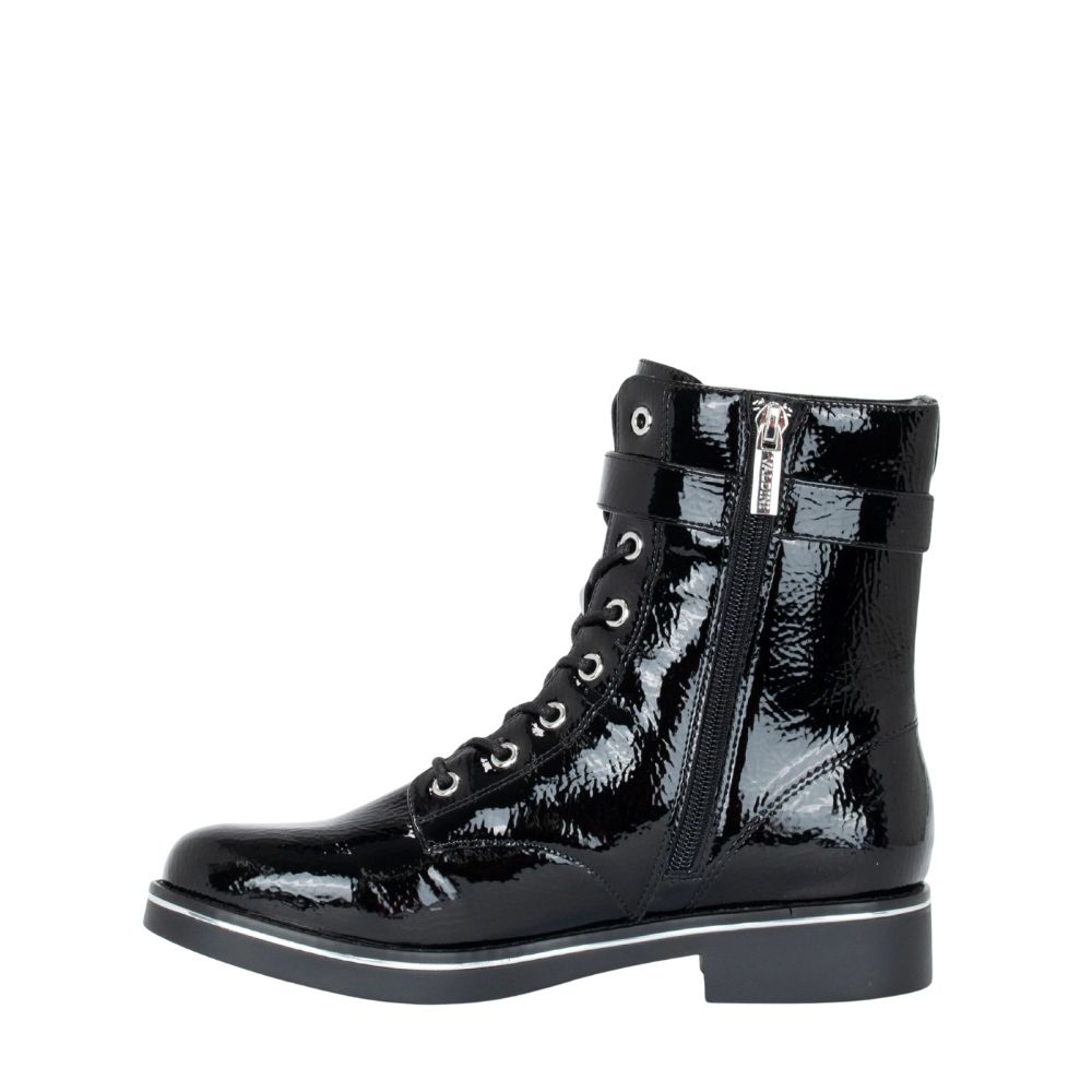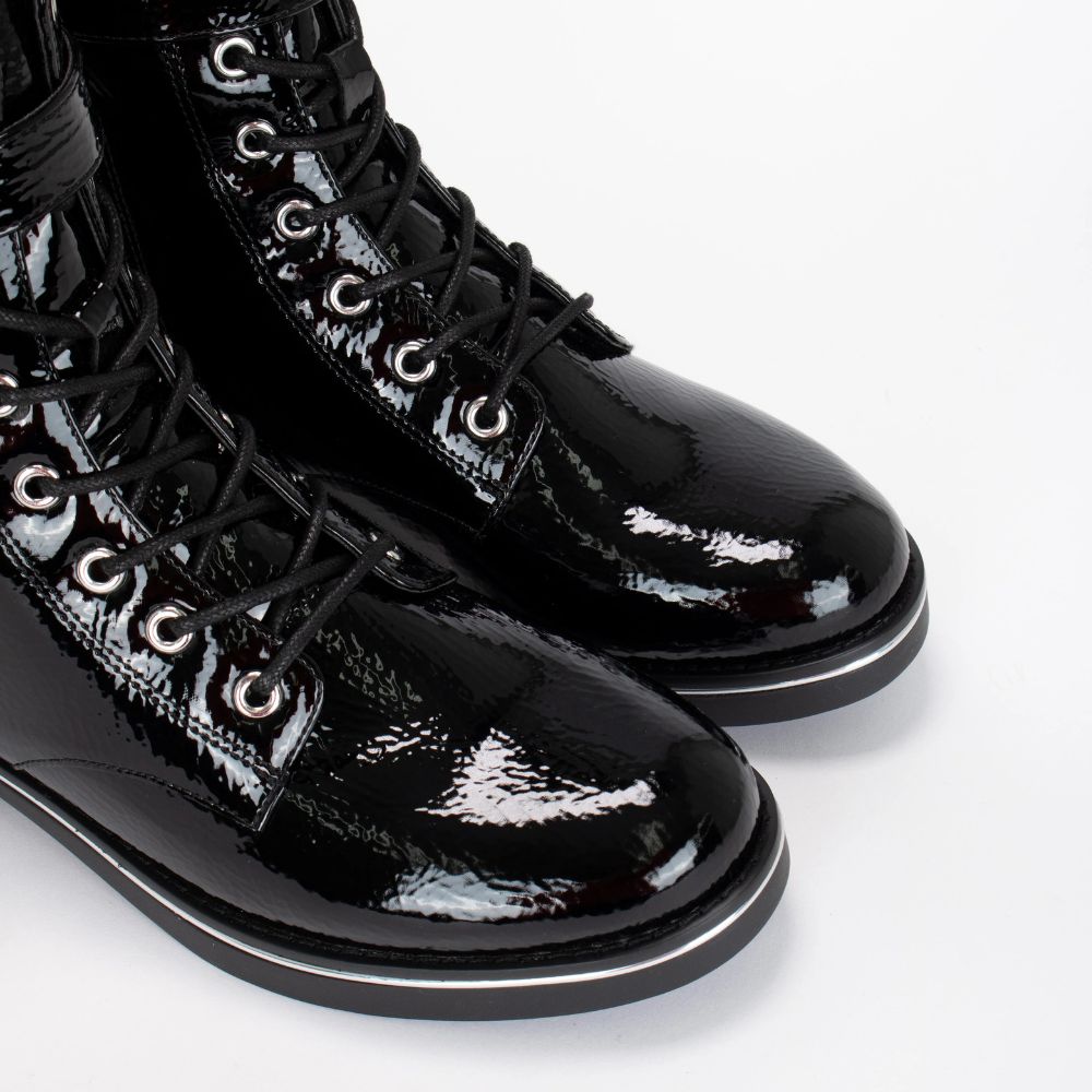 PAIGE par Valdini est une botte courte, simple, chic et classique avec une touche de modernité. Elle est imperméable et dotée d'une doublure légère en velours. Son empeigne est faite d'un matériel synthétique à l'effet cuir verni froissé élégant. Elle est dotée d'une fermeture éclair latérale pour faciliter l'insertion du pied et de lacets pour l'ajustement. Parfaite pour vos déplacements et sorties pendant l'hiver.