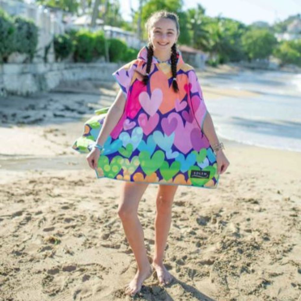 Le poncho enfant Joli Cœur est l’accessoire parfait pour les sorties à la plage, à la piscine ou après le bain. Avec son motif de cœurs multicolores et sa coupe confortable, il apporte une touche joyeuse et pleine de tendresse que les enfants adorent.
