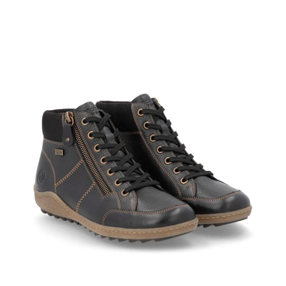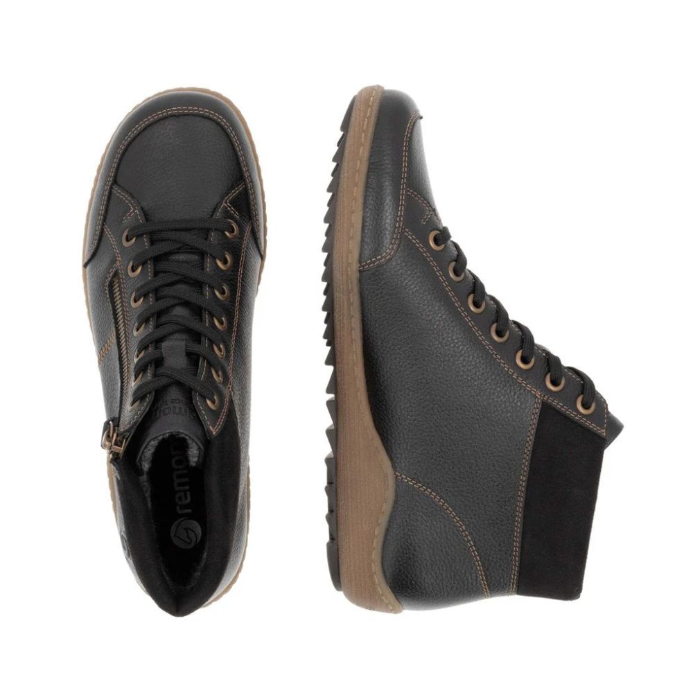 Un style tendance et un confort optimal ? La voilà ! Ces chaussures à lacets Remonte noir graphite en cuir lisse ont tout ce qu'il faut pour être confortables. L'association astucieuse du laçage et de la fermeture éclair offre un maintien optimal et facilite l'enfilage et le retrait. La semelle intérieure rembourrée et amovible ainsi que la semelle adhérente et flexible sont des atouts supplémentaires. Les chaussures à lacets en largeur confort sont également disponibles jusqu'à la pointure 45 ! Grâce à la membrane remonteTEX déperlante, un confort optimal est assuré même par temps froid et humide. C'est là que la bonne humeur entre en jeu !