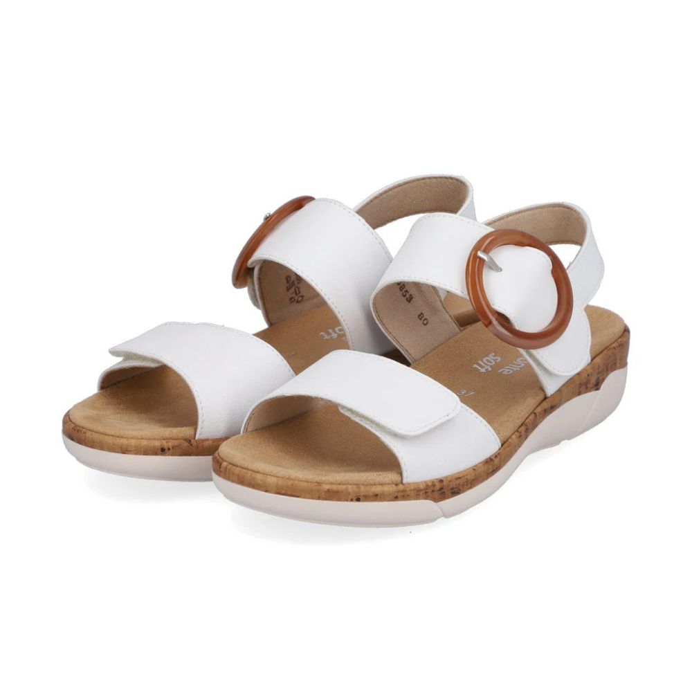 Tendance ! Ces sandales à brides blanc crème Remonte en cuir suédé sont un véritable accroche-regard ! Un maintien idéal et un ajustement parfait sont garantis par de larges brides, une fermeture auto-agrippante et une bride étroite au talon. Une semelle profilée légère et une semelle intérieure souple et interchangeable sont d'autres atouts de ce modèle. Ce modèle est également disponible en grandes tailles. Ainsi, vous pourrez flâner sans problème !