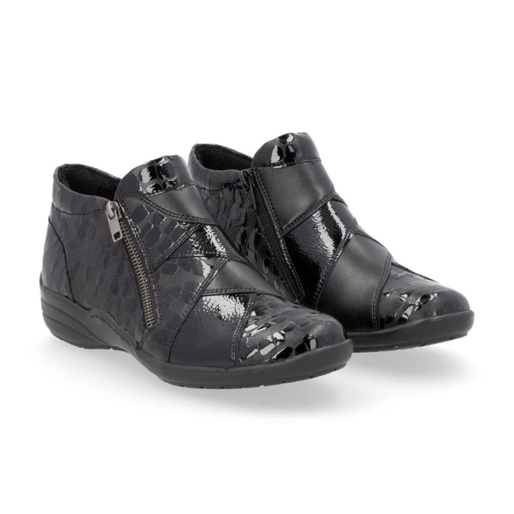 Classiquement féminines et chics ! Ces bottines noires Remonte en cuir lisse respirent la féminité. La fermeture éclair facilite l'enfilage et le retrait. Une semelle légère et amortissante, ainsi qu'une semelle intérieure rembourrée et amovible, sont autant d'atouts de ces bottines. De plus, leur largeur supplémentaire offre une plus grande liberté de mouvement à l'avant-pied. On adore !