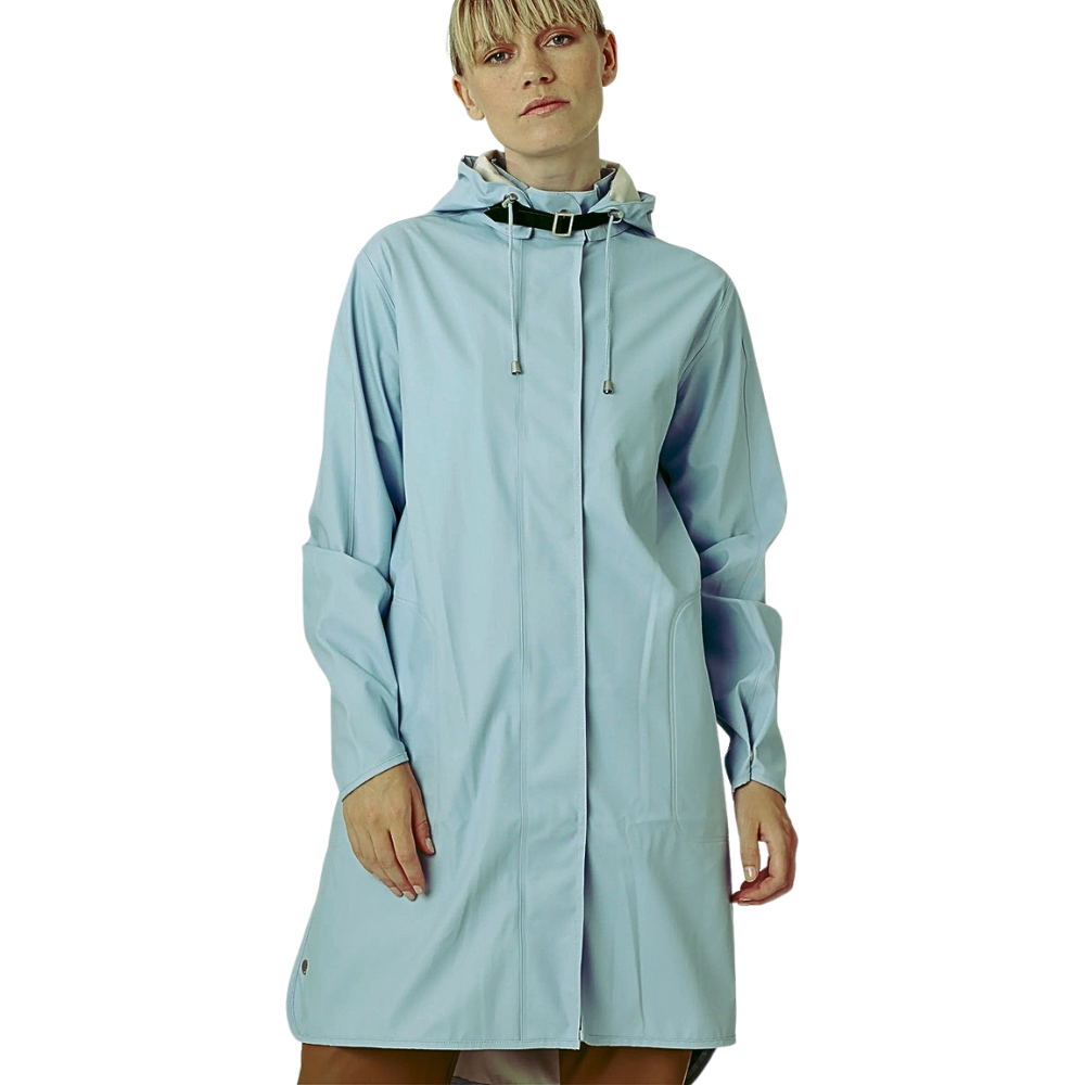 Cet imperméable féminin et ample, RAIN71, signé Ilse Jacobsen, coupe trapèze, tombe juste en dessous du genou. Déperlant, il est doté d'une capuche amovible qui se ferme grâce à une sangle en cuir et une boucle. Son tissu léger en polyuréthane, doté d'un revêtement imperméable et de coutures scellées, vous permet de vous déplacer avec style sous la pluie. Deux poches à rabat, des boutons-pression et une fermeture éclair double curseur sous patte complètent ce modèle. Avec cet imperméable, aucune averse ne sera trop forte pour vous !