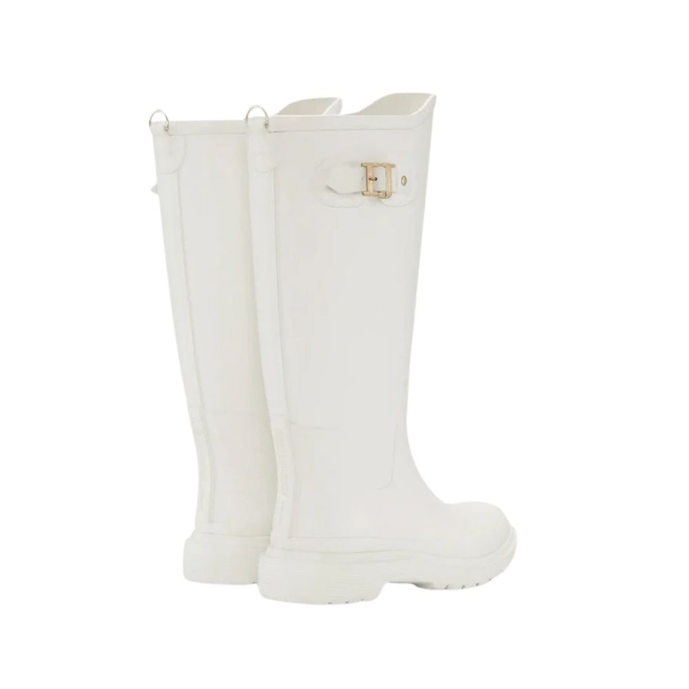 Bottes en caoutchouc montantes jusqu'au genou. Un modèle alliant style et fonctionnalité pour les jours de pluie. Elles sont ornées d'un anneau en D décoratif au centre du talon et d'un logo sur la tige. La bride est munie d'une boucle métallique logotée. La semelle légère, en EVA et caoutchouc, assure une excellente adhérence sur sol mouillé. Le design ton sur ton de la tige et de la semelle apporte une touche d'élégance à toutes vos tenues pluvieuses.