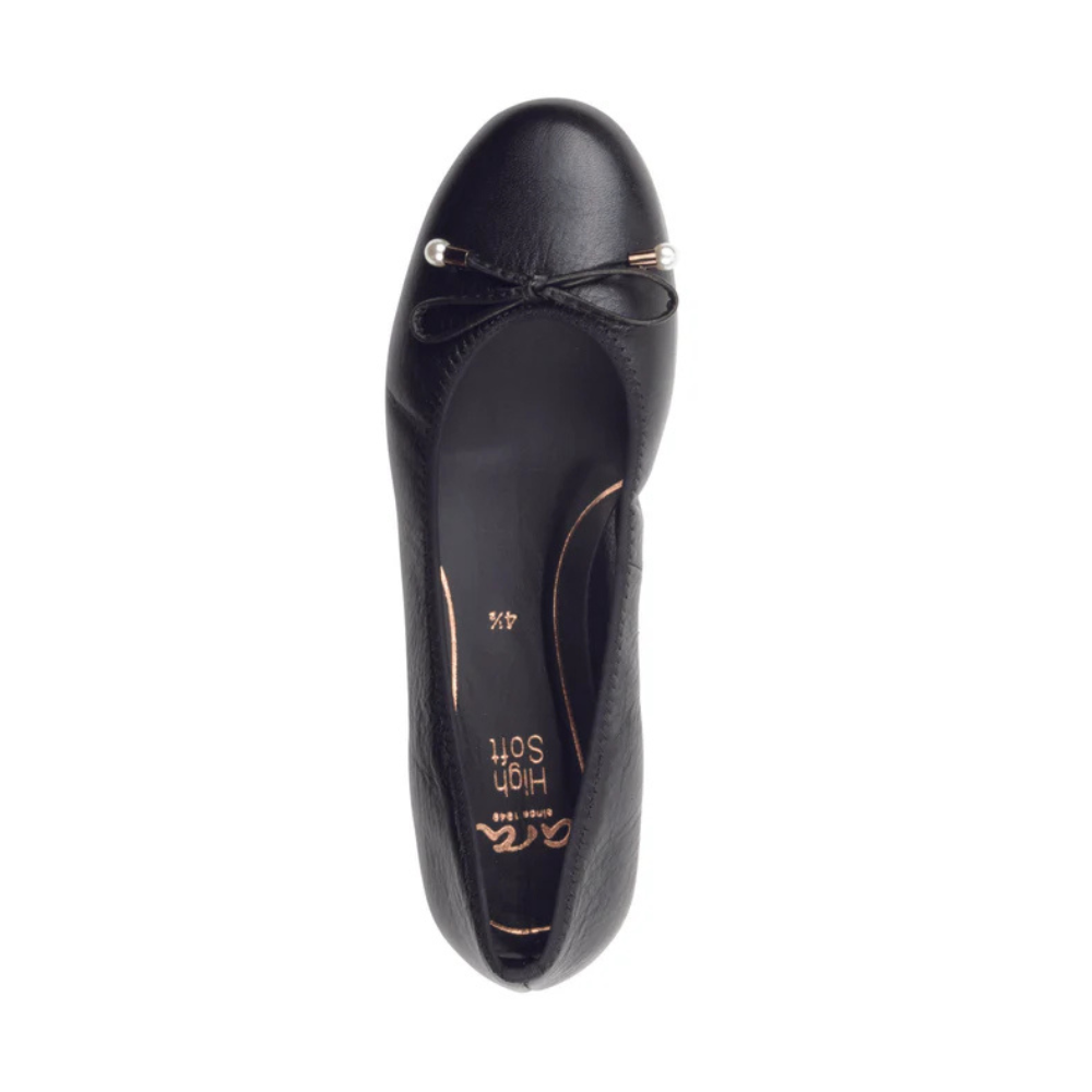 La Scout d'Ara est une ballerine intemporelle ornée d'un nœud et d'embouts métalliques. Elle est dotée d'une tige élastiquée pour un ajustement personnalisé et de la technologie HighSoft d'Ara pour un confort inégalé.