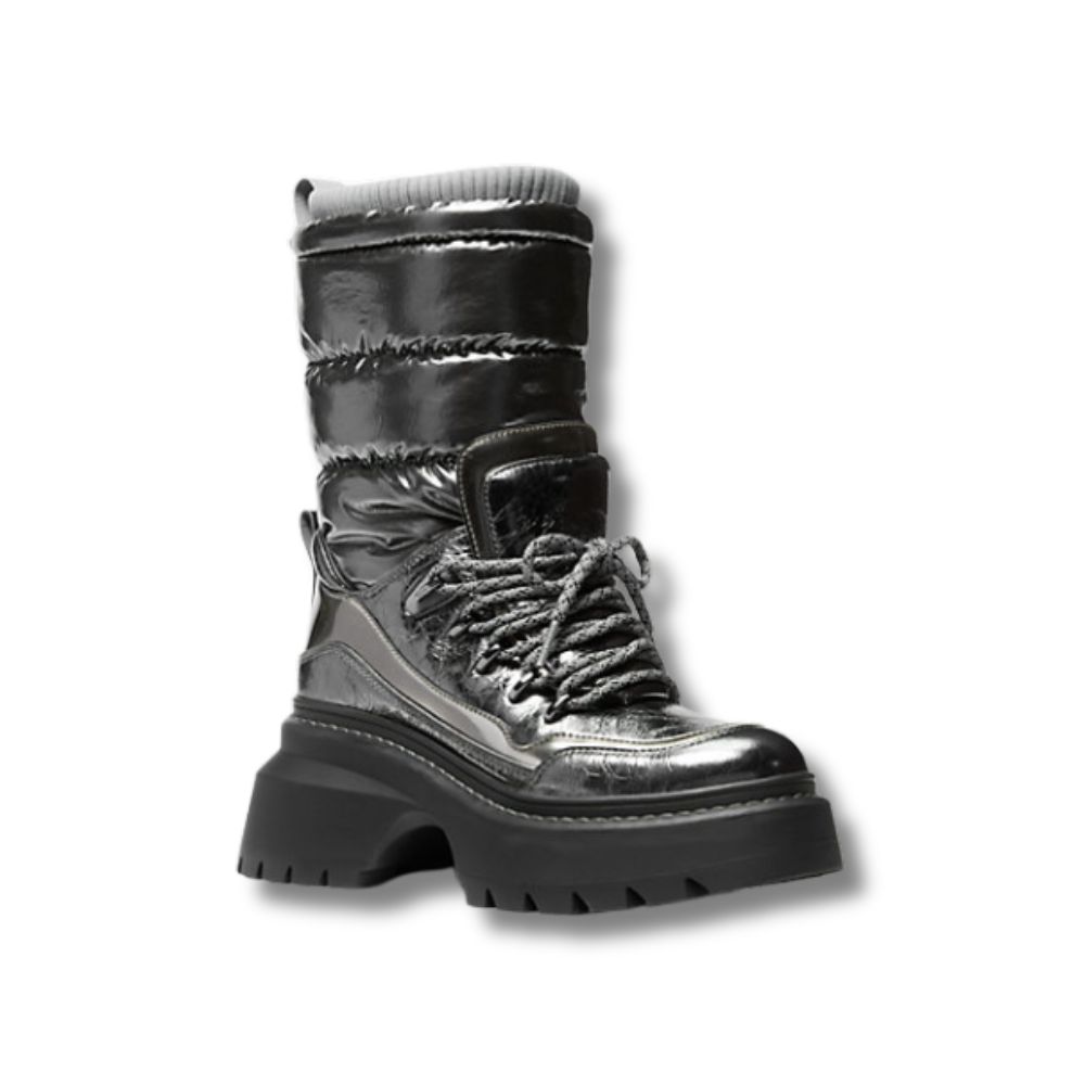 La botte Shiloh, à la fois moderne et classique, allie le confort de l'après-ski à une allure citadine chic. Confectionnée pour résister à l'eau, cette botte à plateforme et à tige arquée, conserve la chaleur. On adore particulièrement ses crochets de laçage élégants, inspirés des bottes de randonnée.
