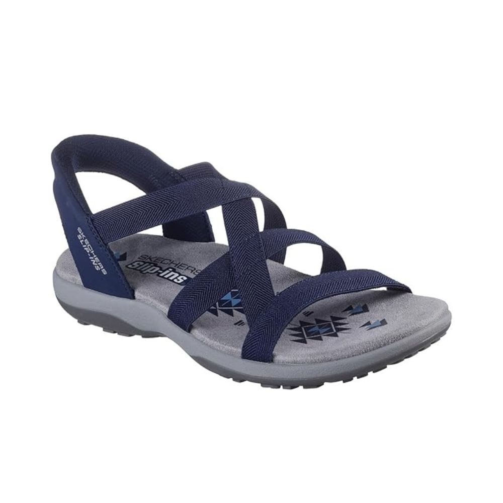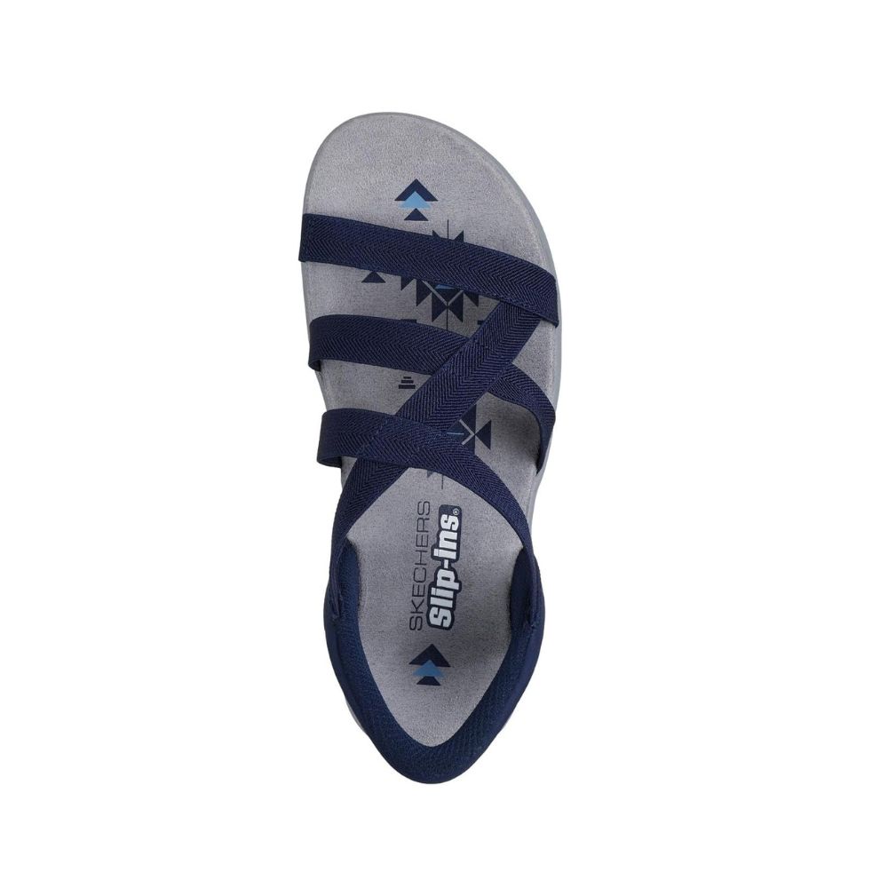 Profitez des journées ensoleillées en tout confort avec les sandales Skechers Hands Free Slip-ins® : Reggae Slim – Stretch Flex. Conçues avec notre coussinet de talon Heel Pillow®, ces sandales à brides sont dotées d'une bride en tissu extensible, d'un talon Skechers Hands Free Slip-ins® et d'une semelle intérieure rembourrée.