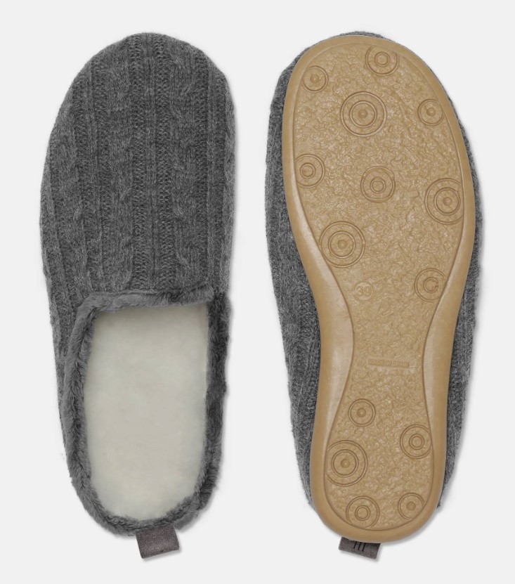 Claquettes confortables avec doublure 100 % laine. Douces et confortables pour les journées à la maison. Semelle extérieure en caoutchouc. Fabriquées en Europe.