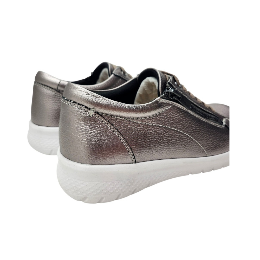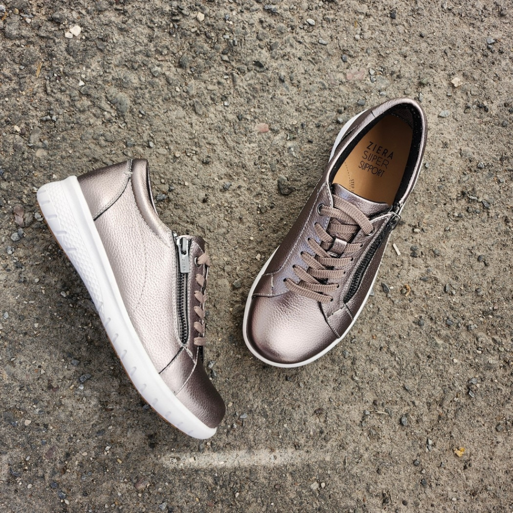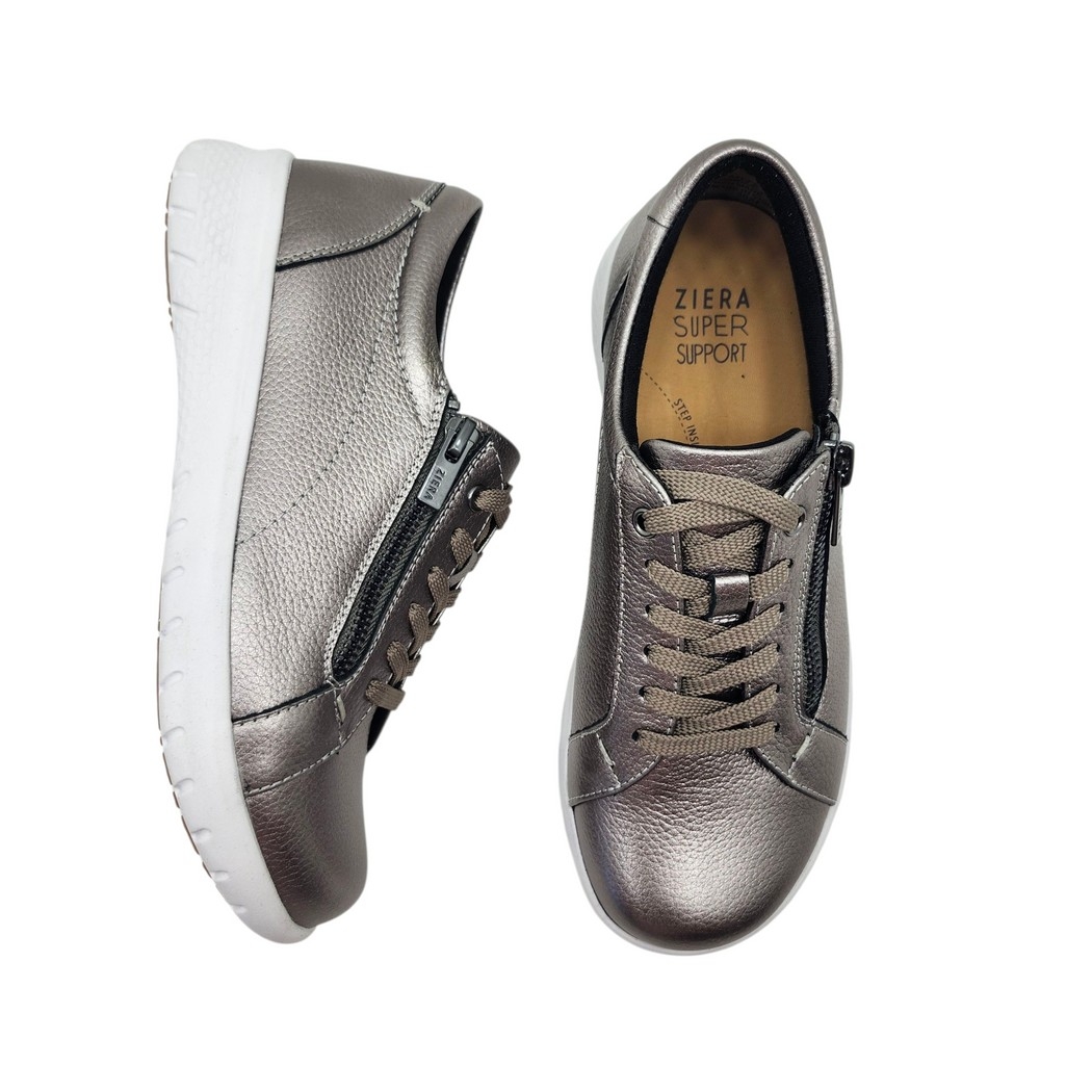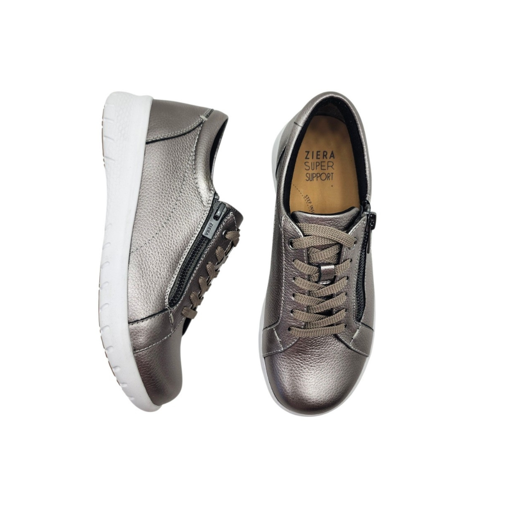 La chaussure Solar de Ziera, dans sa teinte Pewter, est l'alliance parfaite de l'élégance et du confort. Conçue dans un cuir souple, cette chaussure sophistiquée se distingue par sa largeur plus ample et sa profondeur accrue, permettant d'y insérer facilement une orthèse personnalisée. Son look métallisé et sa silhouette polyvalente en font la partenaire idéale pour toutes vos tenues, vous garantissant un soutien optimal et un style sans effort.