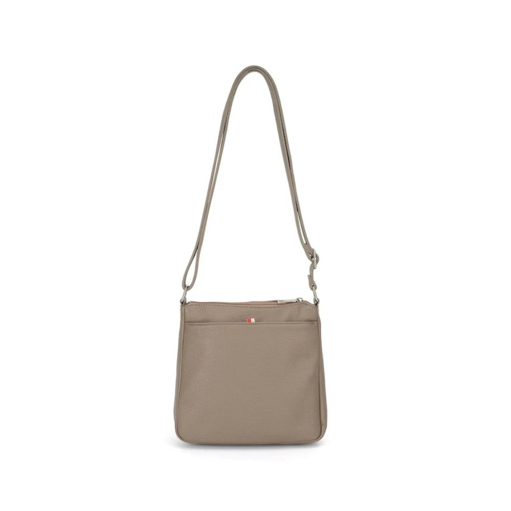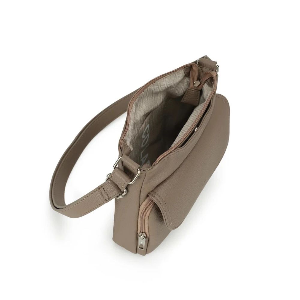 Sac bandoulière pratique et bien organisé, idéal pour garder vos essentiels à portée de main lors de vos déplacements. Conçu en cuir végétalien texturé recyclé, il dispose d’une ouverture zippée sur le dessus, d’une poche cachée avec fermeture magnétique, d’une poche à rabat zippée, et d’une poche arrière plaquée. La bandoulière réglable assure un port confortable.