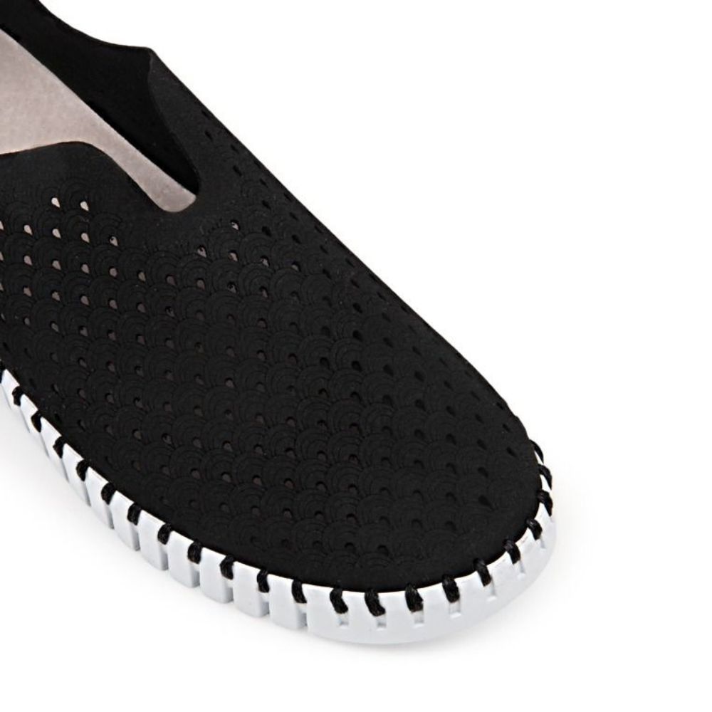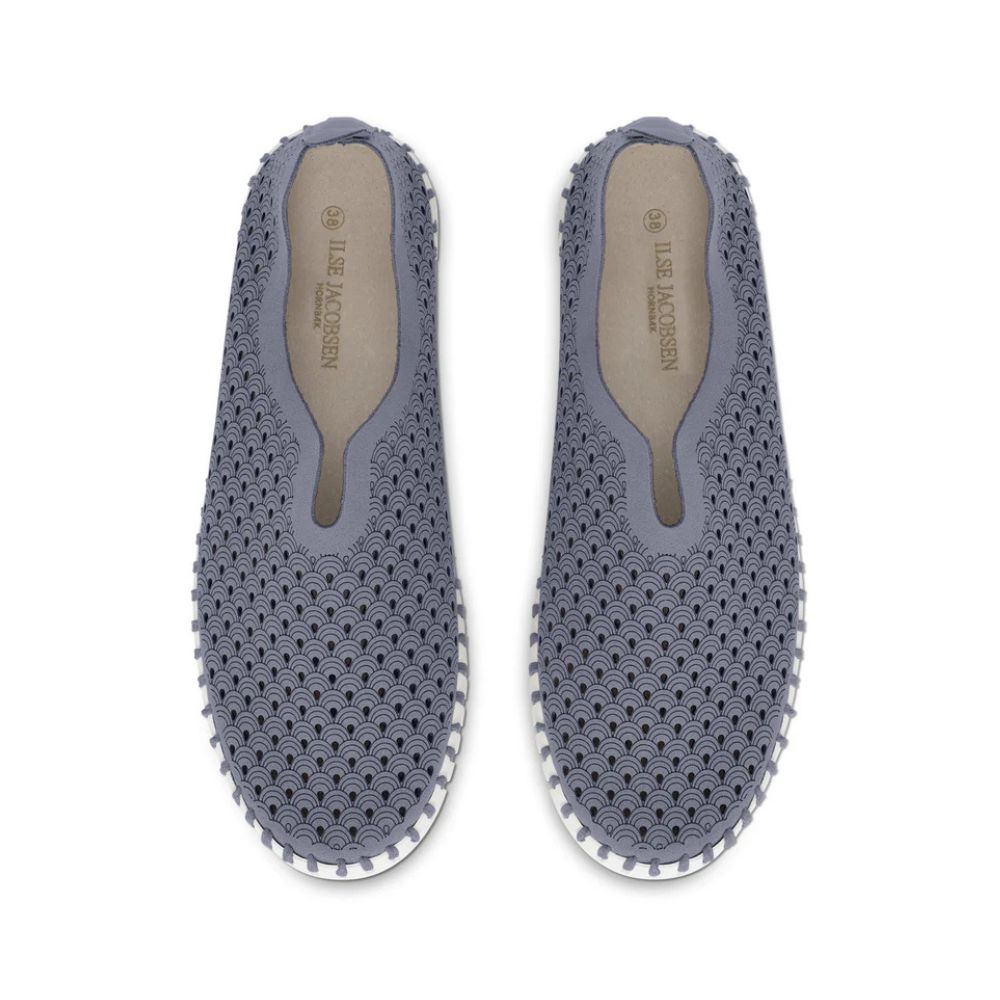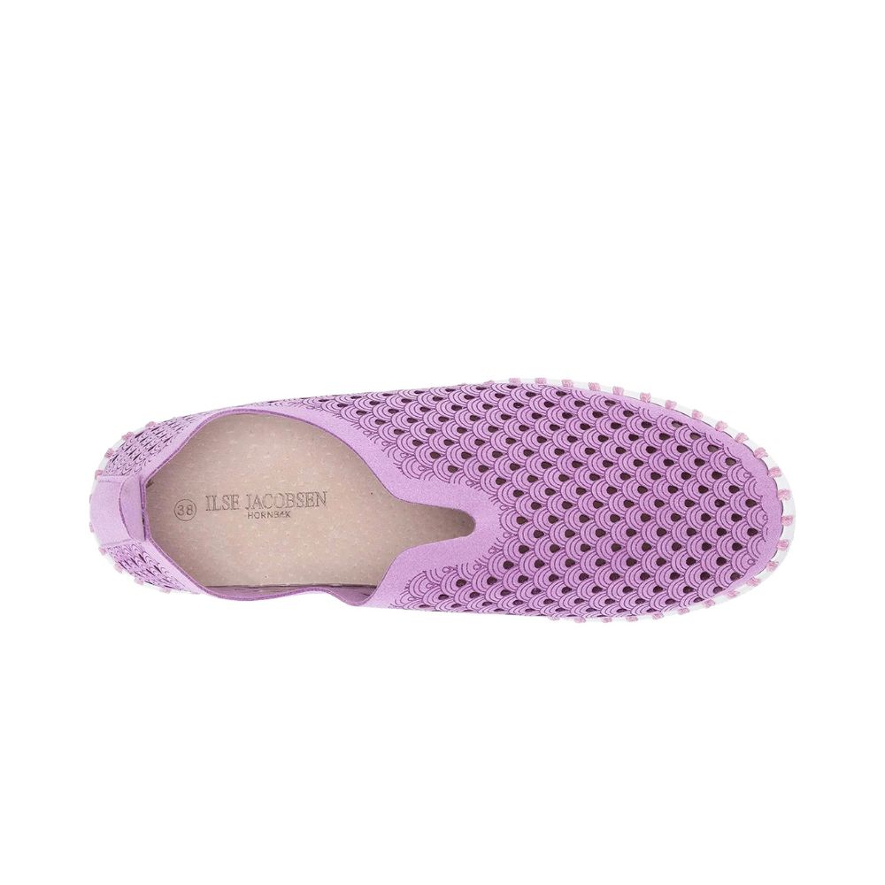 Chaussure Tulip emblématique et légère d'ILSE JACOBSEN. Son empeigne est confectionnée en microfibre recyclée et ornée d'un motif découpé au laser. La tige est assemblée sans colle à la semelle extérieure à l'aide de fil recyclé. La semelle intérieure, rembourrée et offrant un bon maintien, garantit un confort optimal.