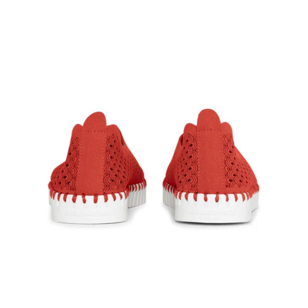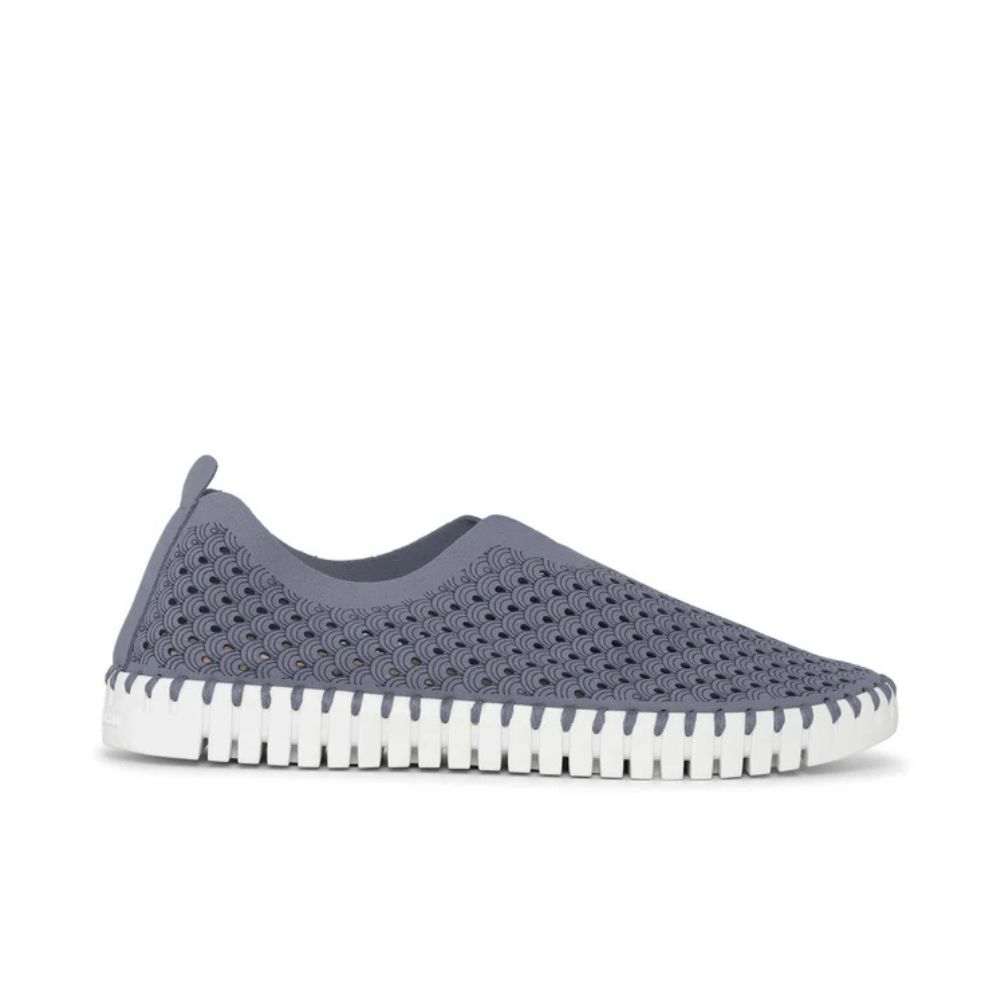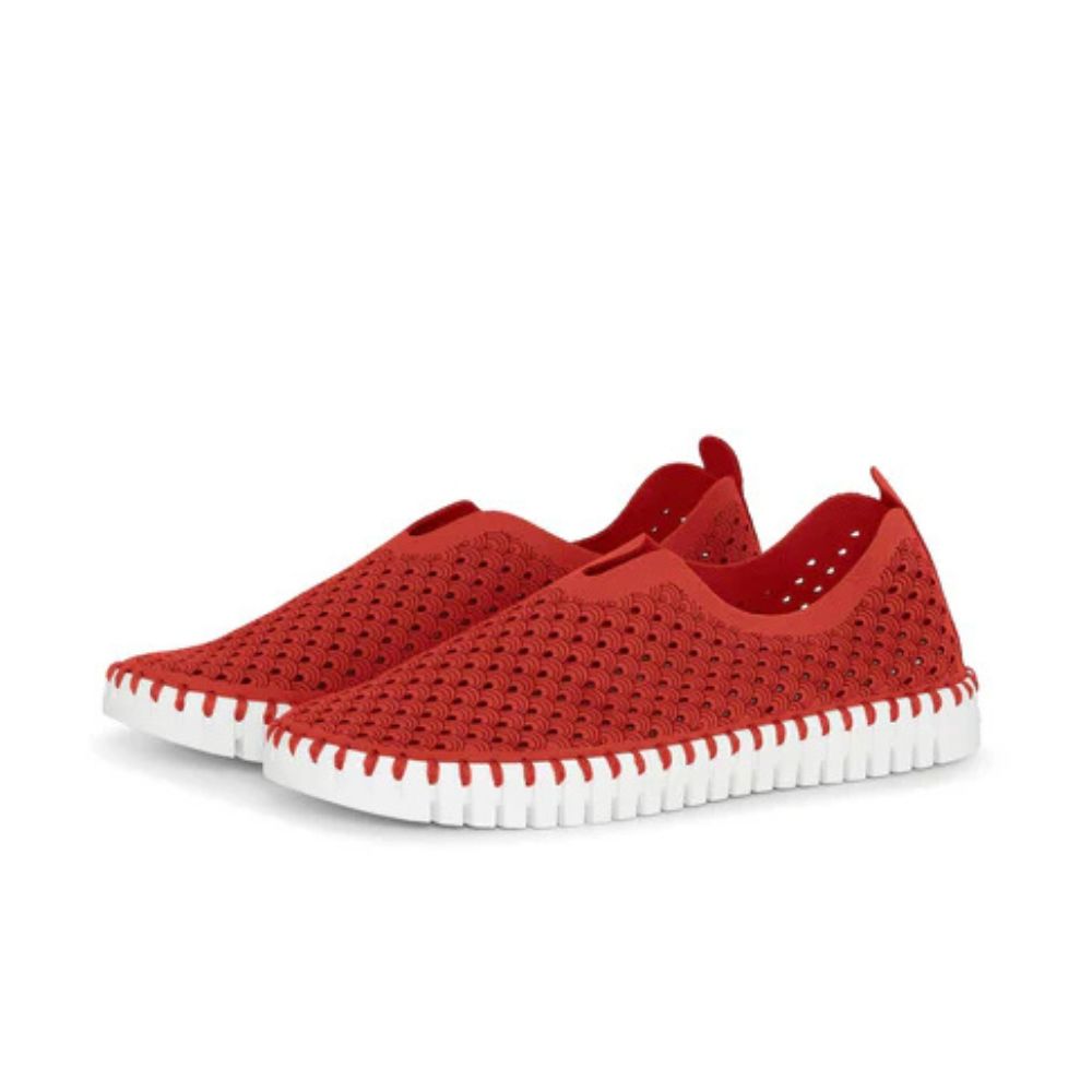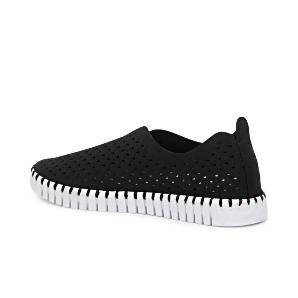 Chaussure Tulip emblématique et légère d'ILSE JACOBSEN. Son empeigne est confectionnée en microfibre recyclée et ornée d'un motif découpé au laser. La tige est assemblée sans colle à la semelle extérieure à l'aide de fil recyclé. La semelle intérieure, rembourrée et offrant un bon maintien, garantit un confort optimal.