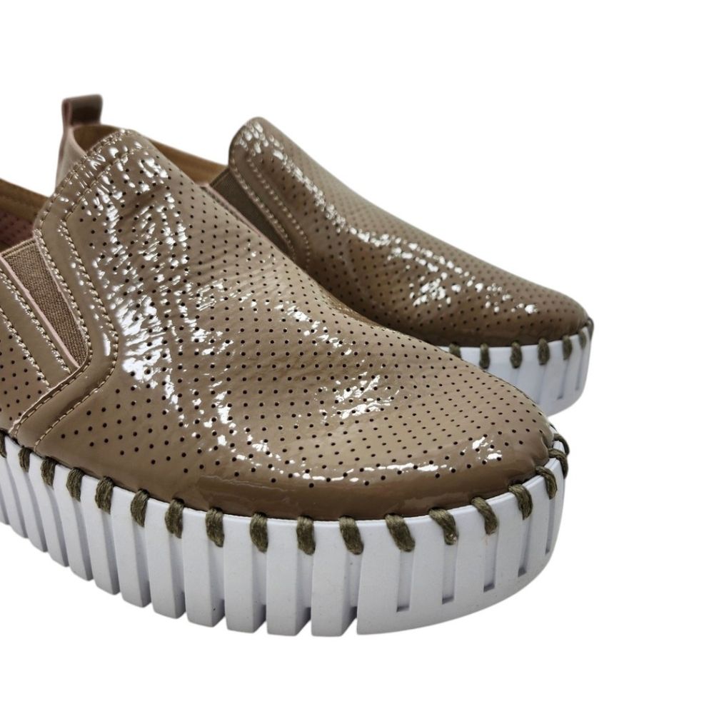 Sublimez votre style quotidien avec ces ballerines plateformes Ilse Jacobsen Tulip saisissantes. Confectionnés en cuir verni brillant, ils offrent un éclatage instantané à toute tenue décontractée. La finition brillante capte magnifiquement la lumière, transformant un jean simple et un t-shirt en un ensemble chic sans effort. Parfait pour ceux qui refusent de faire des compromis sur le style, même lorsque le confort est la priorité.