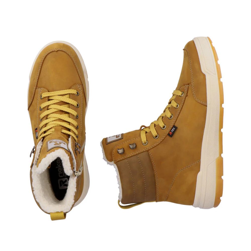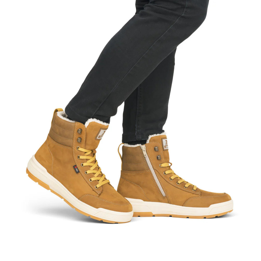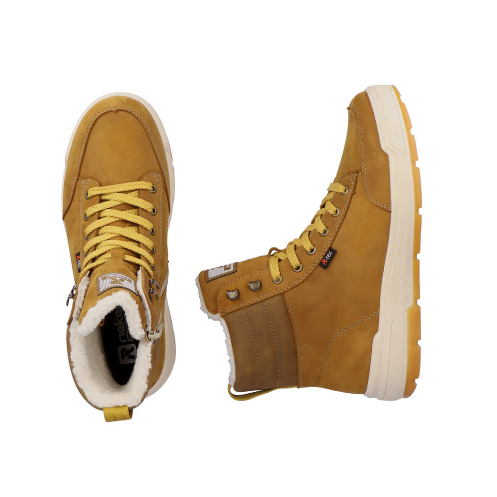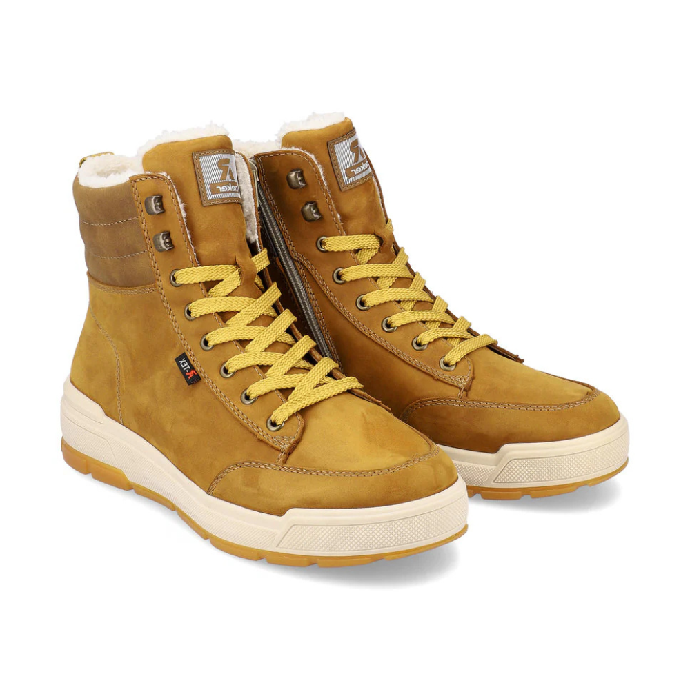 Des chaussures tendance pour les journées froides ? Les voici ! Ces bottines Rieker à lacets en daim sont LA pièce maîtresse. Malgré le laçage, la chaussure se ferme facilement grâce à la fermeture éclair. La semelle légère et adhérente assure une bonne adhérence en toutes circonstances. La semelle intérieure rembourrée et amovible est un atout fonctionnel et confortable. Grâce à la largeur confort G 1/2, l'avant-pied est suffisamment spacieux. La doublure en laine vierge douillette et très chaude garde les pieds au chaud, tandis que la membrane RiekerTEX les garde au sec ! Que la fête commence !