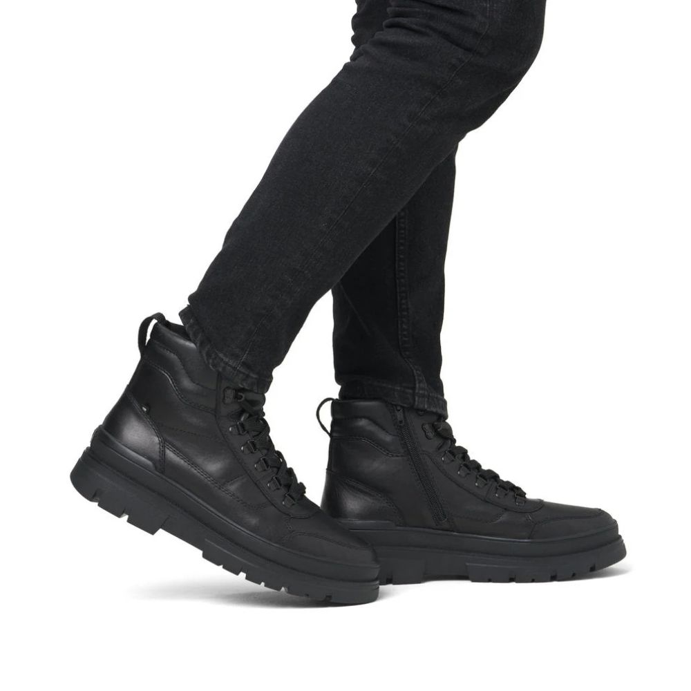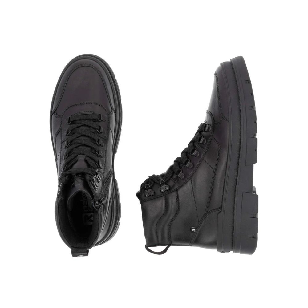 Un trio de rêve : style, confort et fonctionnalité ! Ces bottines Rieker à lacets en cuir lisse sont LA chaussure idéale au quotidien, car le noir est une valeur sûre ! Malgré le laçage, elles se ferment facilement grâce à la fermeture éclair. La semelle intermédiaire en EVA, intégrée à la semelle extérieure robuste, assure une marche encore plus légère et souple. La semelle intérieure rembourrée et amovible est un atout confort indéniable. Grâce à sa largeur confort G 1/2, l'avant-pied bénéficie d'un espace généreux. Un style de vie sportif réinventé !