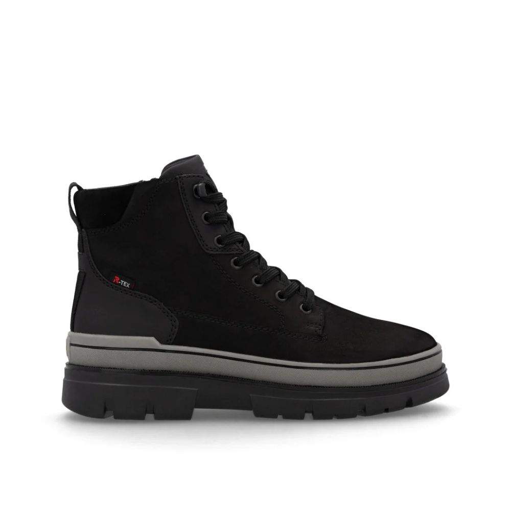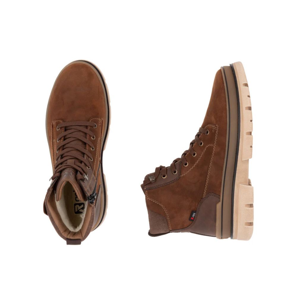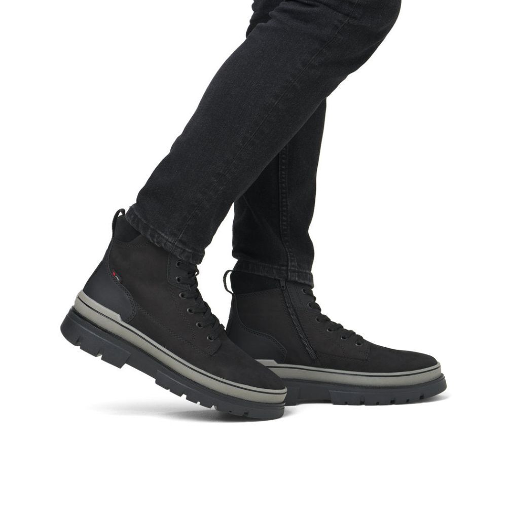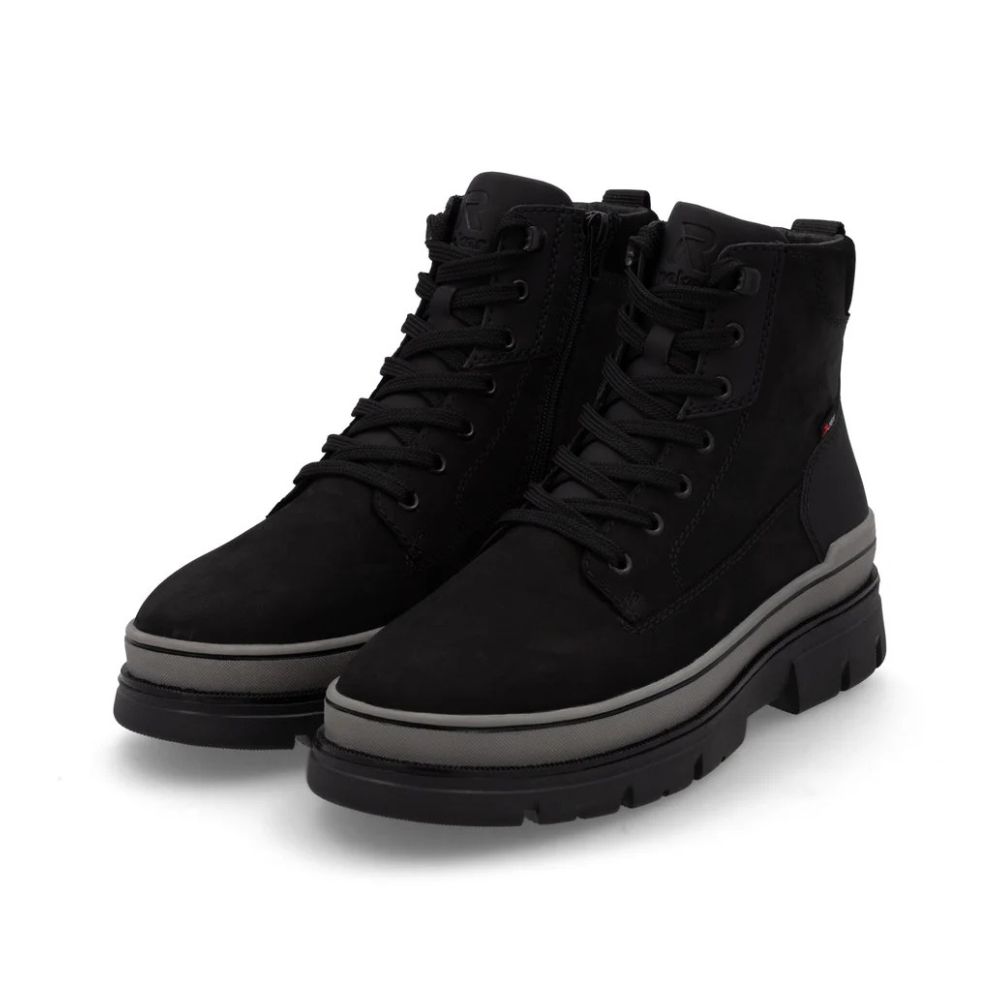 Un confort optimal en toutes circonstances ? C'est possible ! Ces bottines Rieker à lacets en daim rendent la saison froide agréable. L'ingénieuse combinaison de lacets et de fermeture éclair garantit un ajustement parfait et un maintien optimal. Grâce à la semelle intermédiaire en EVA, intégrée à la semelle extérieure robuste, la marche est encore plus facile et souple. Autre atout confort : la largeur G 1/2 offre plus d'espace à l'intérieur de la chaussure. La surface déperlante assure une protection optimale contre les intempéries et la semelle intérieure thermique protège du froid. La laine vierge douce et très chaude offre une protection supplémentaire contre le froid. Redéfinissez votre style de vie !