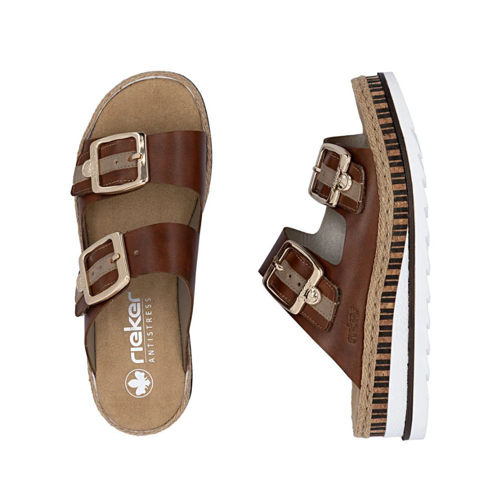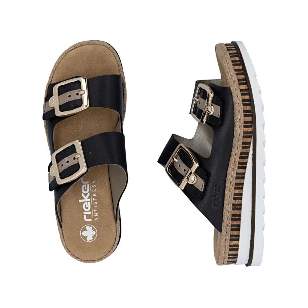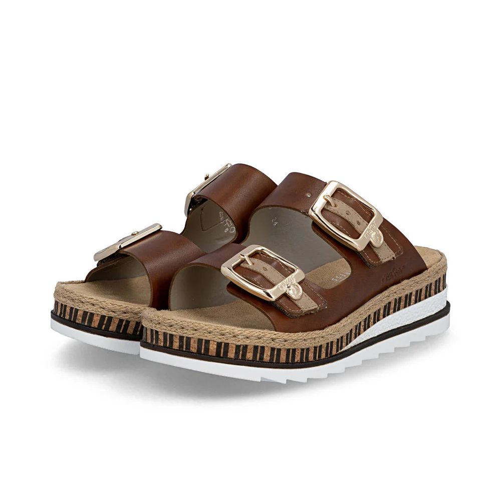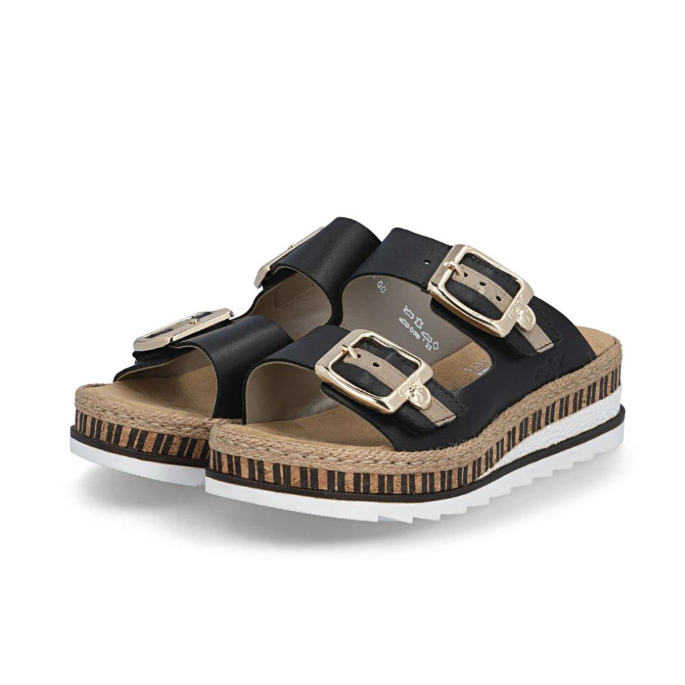 Confort et luxe à l'état pur ! Ces mules Rieker en cuir lisse allient style, fonctionnalité et confort. Leur construction cousue leur confère robustesse et une semelle particulièrement souple. La double fermeture auto-agrippante permet un enfilage rapide et un maintien parfait. La boucle tendance apporte une touche d'originalité. La semelle compensée, légère et amortissante, assure un confort optimal à chaque pas. De plus, la semelle extérieure est ultra-douce. La coupe ajustée offre un maintien supplémentaire. Un pas vers un été radieux.