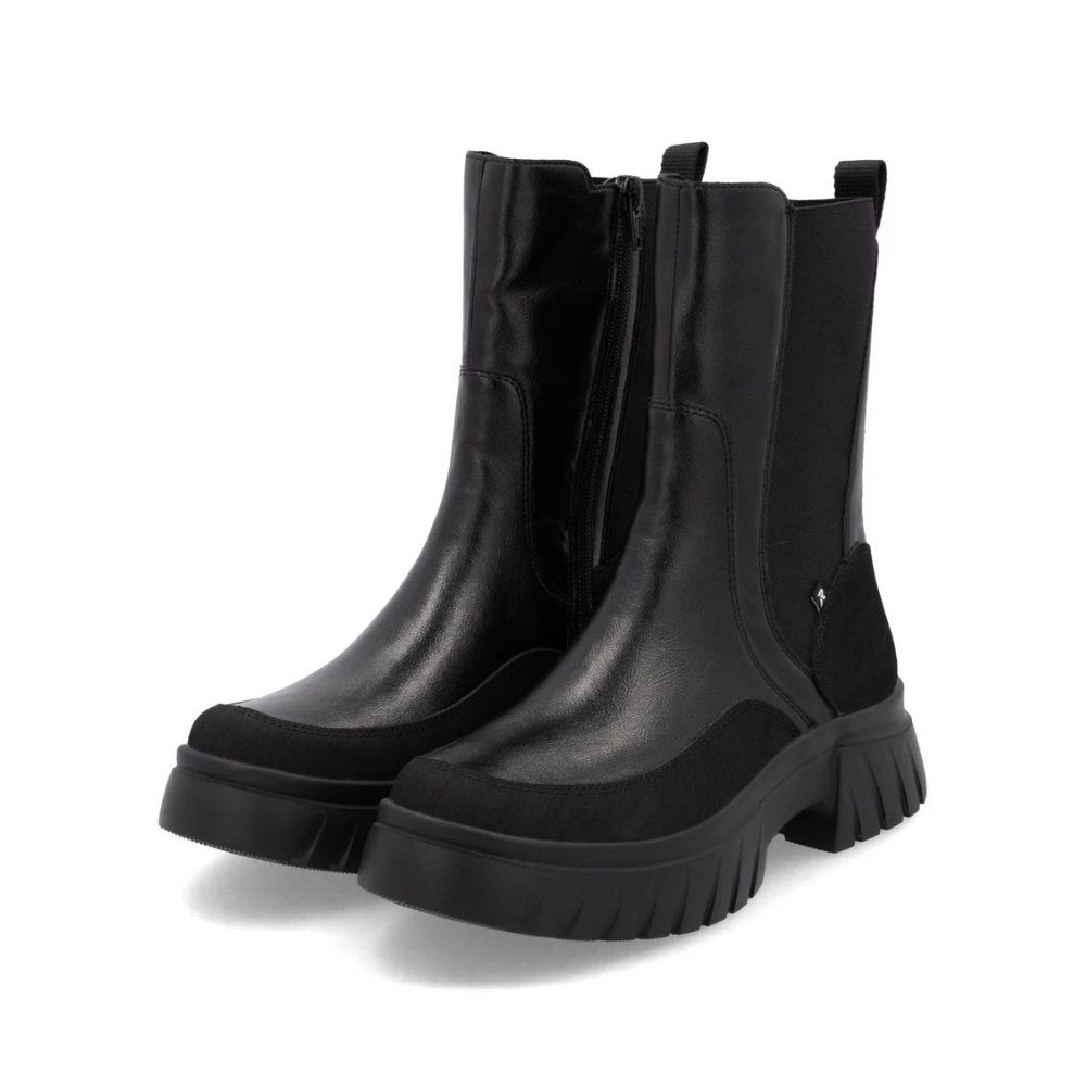 Décontractées et modernes! Ces bottines de style Chelsea de Révolution par Rieker pour femme allient style et confort. En plus de la fermeture éclair, le modèle est doté d'une tige flexible, ce qui le rend deux fois plus facile à enfiler. La semelle ultra légère et flexible assure une sensation de port agréable. Un autre avantage est la semelle intérieure rembourrée et amovible.
