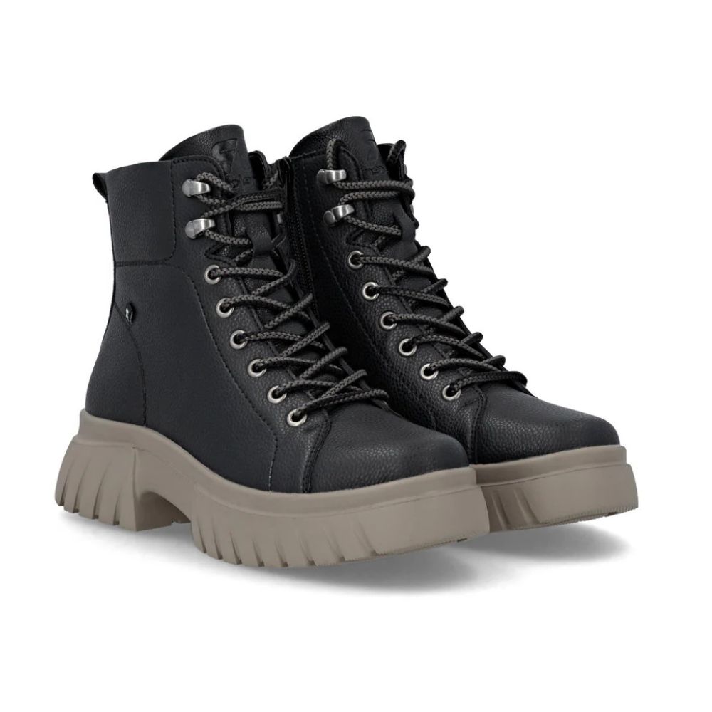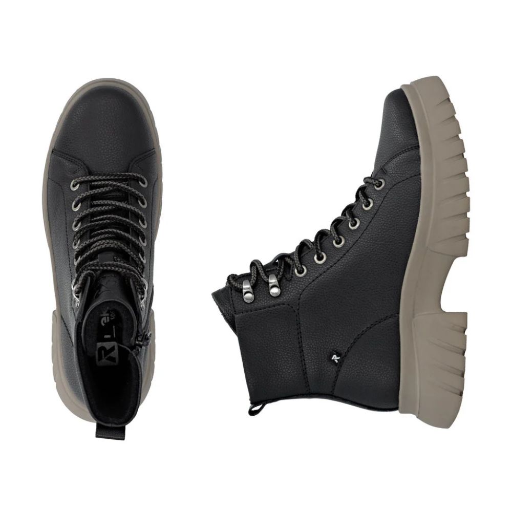 Bottes motardes Rieker noires en cuir lisse de haute qualité. Fermeture éclair et lacets pour un enfilage et un retrait faciles et rapides. Semelle intérieure rembourrée et amovible aux propriétés amortissantes. La largeur confortable garantit un ajustement parfait.