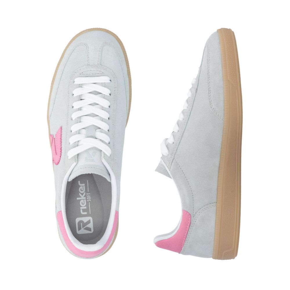 Baskets basses Rieker fabriquées en cuir suédé de haute qualité. La semelle intérieure Swing2GO avec soutien de la voûte plantaire assure une excellente absorption des chocs et restitue de l’énergie à chaque pas. Les propriétés résistantes à l’usure et durables de la semelle extérieure TR garantissent une bonne adhérence. Doublure légère en micro-velours et cuir synthétique. De plus, la largeur confort assure un ajustement parfait.