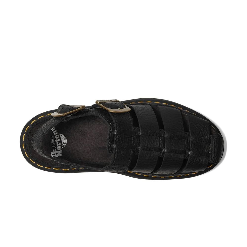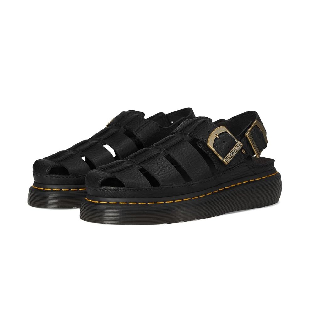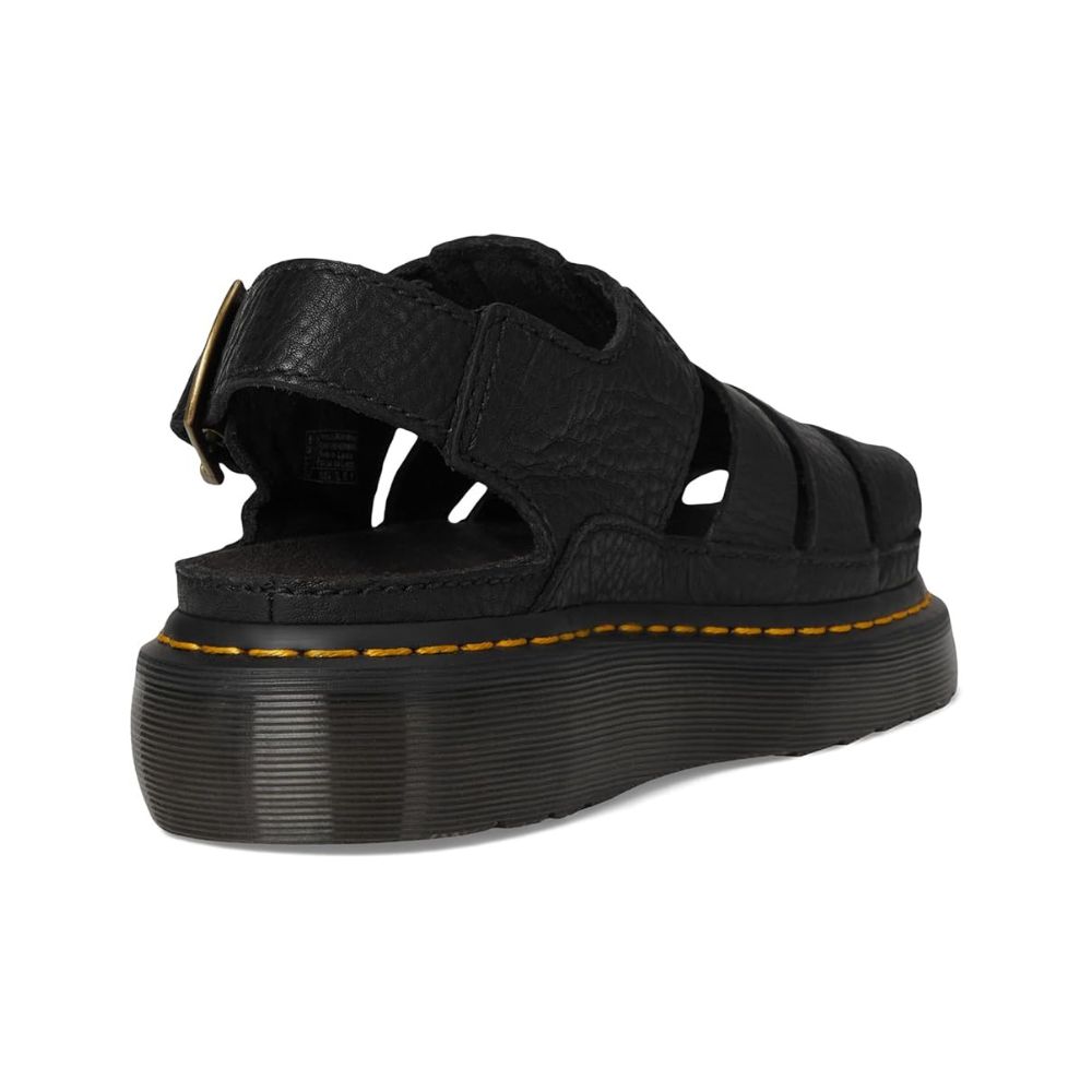 Ces sandales Dr. Martens® Archive Fisherman ravivent la nostalgie des beaux jours avec l'esprit, le style intemporel et la polyvalence des Dr. Martens des années 90. Cette nouvelle édition repose sur une semelle Quad Shore imposante pour un look toujours aussi remarquable. Ornées d'une boucle dorée vieillie et de rivets DM, elles arborent des surpiqûres jaunes qui soulignent l'ADN de la marque. Confectionnées en cuir, doublure en daim, semelle intérieure en cuir et bride ajustable avec boucle.