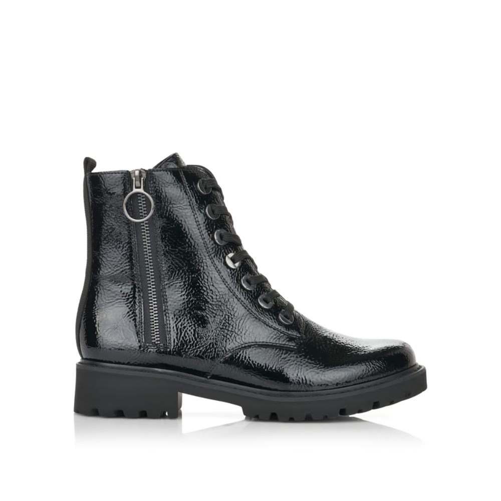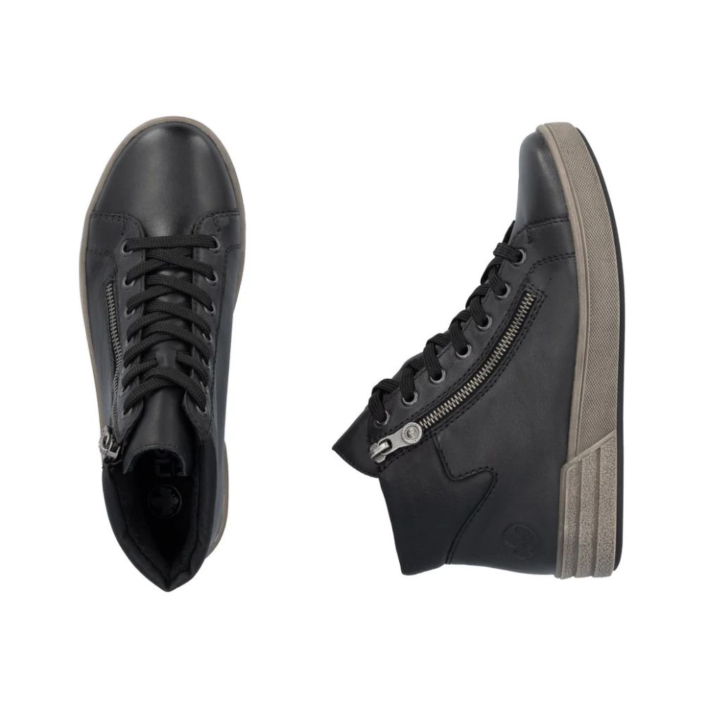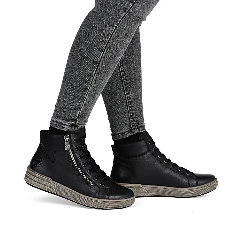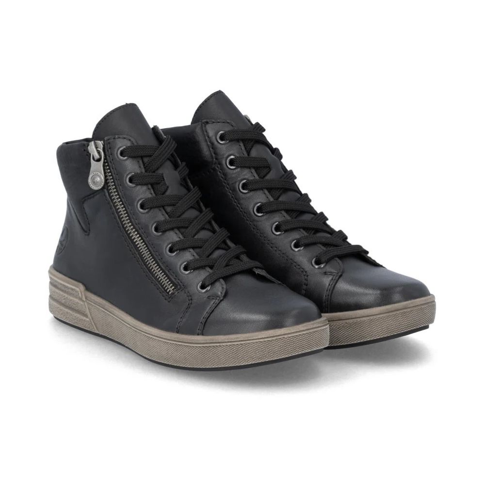 Avis aux passionnées de mode : les incontournables Rieker sont arrivés ! Ces bottines noires à lacets ont tout pour plaire : confort, fonctionnalité et, bien sûr, style. L’ingénieux système de laçage et de fermeture éclair garantit un ajustement parfait et un maintien optimal. L’imprimé léopard apporte la touche finale et un look saisissant. Grâce à sa semelle adhérente, la marche est assurée. La semelle intérieure rembourrée et amovible offre un véritable cocon de douceur à vos pieds ! De plus, sa largeur confortable offre une grande liberté de mouvement à l’avant du pied. Le bien-être et la mode, signés Rieker !