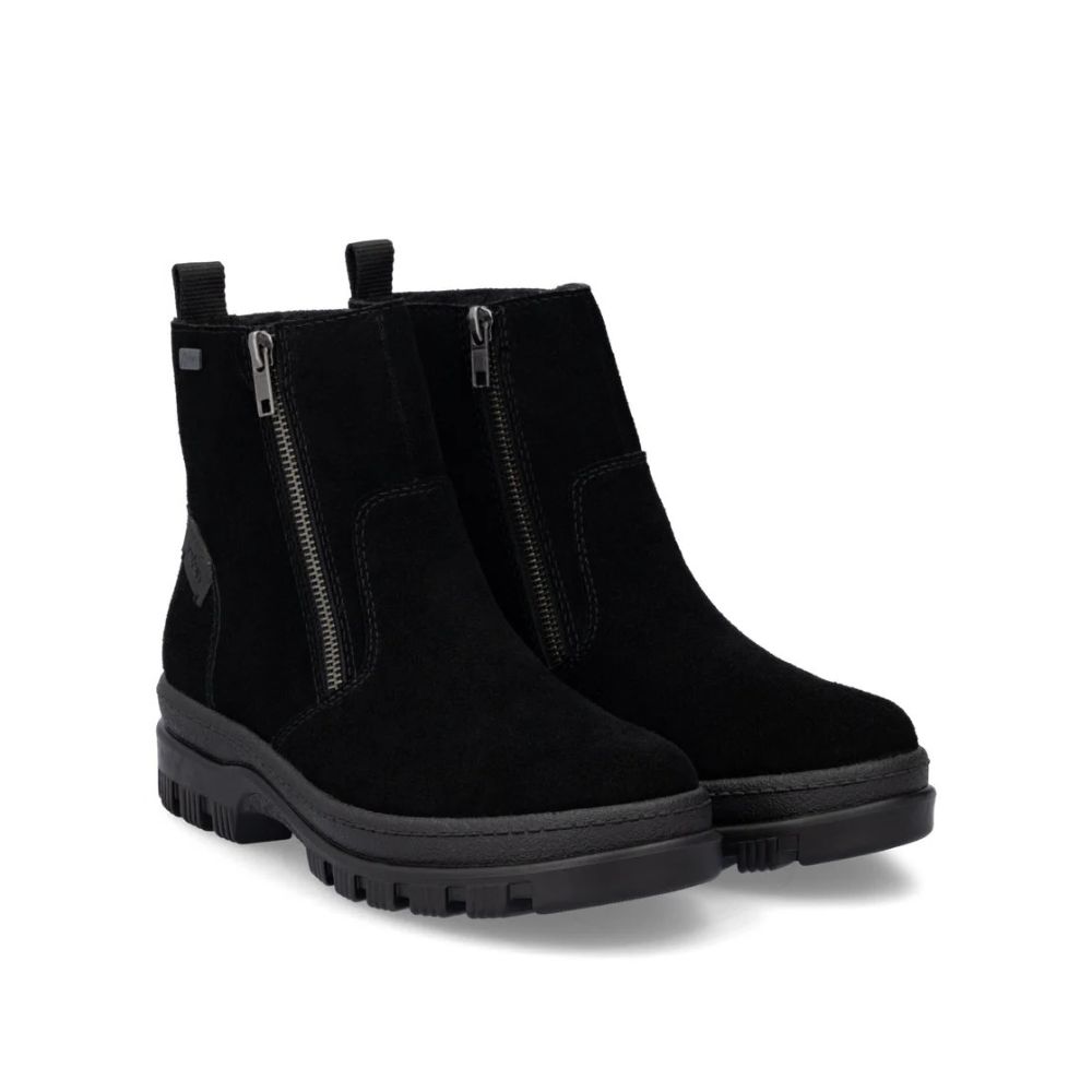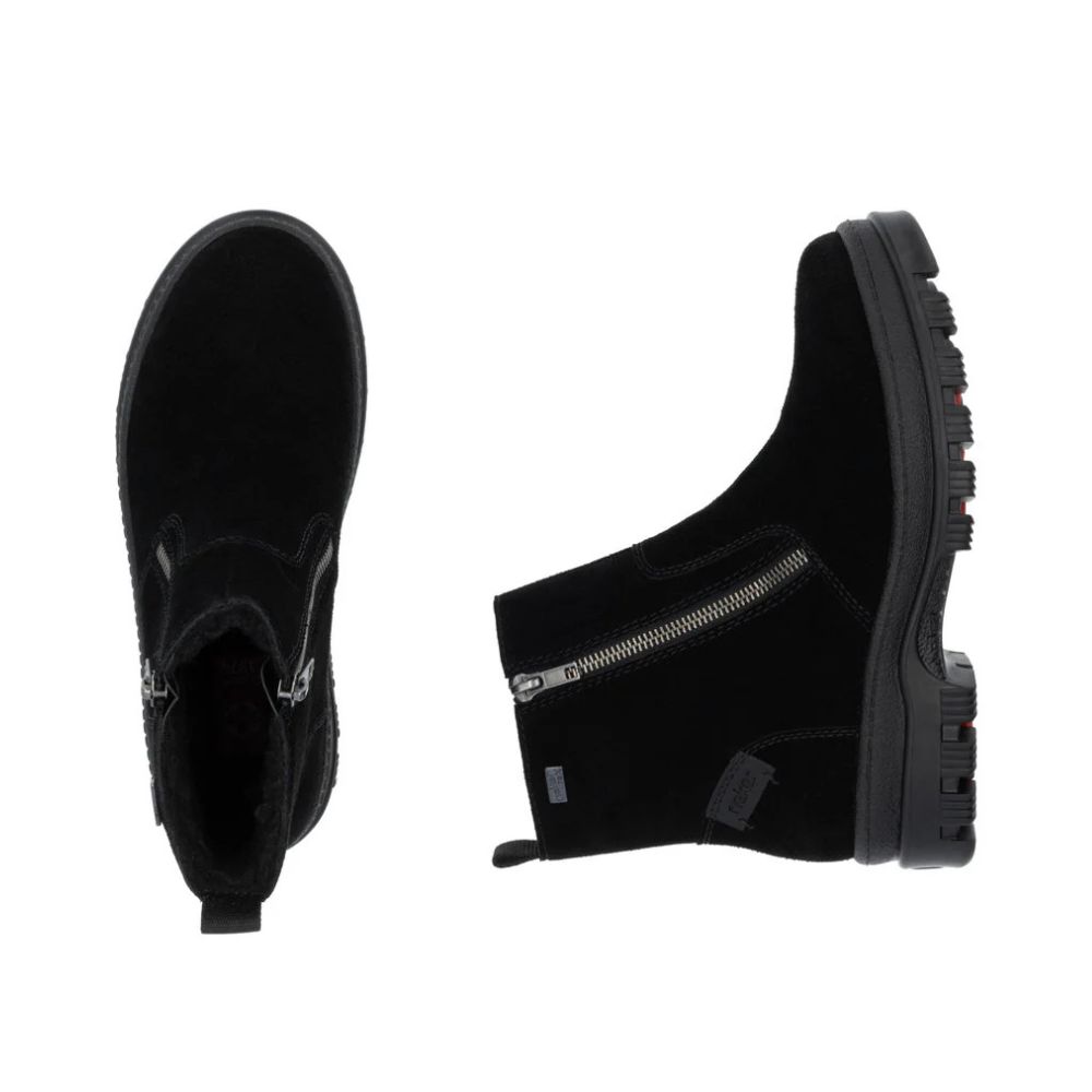 Fini les pieds froids ! Ces bottines Rieker noires en daim sont idéales pour les enfiler facilement et rapidement. Leur fermeture éclair assure une bonne adhérence à chaque pas. La semelle intérieure amovible est un atout supplémentaire pour un confort optimal. Grâce à la membrane RiekerTEX déperlante et aux crampons rabattables de la technologie Flip-Grip, ces chaussures sont idéales par temps humide et verglacé. La doublure douce et chaude garde les pieds bien au chaud. Plus rien ne vous empêche de longues promenades !