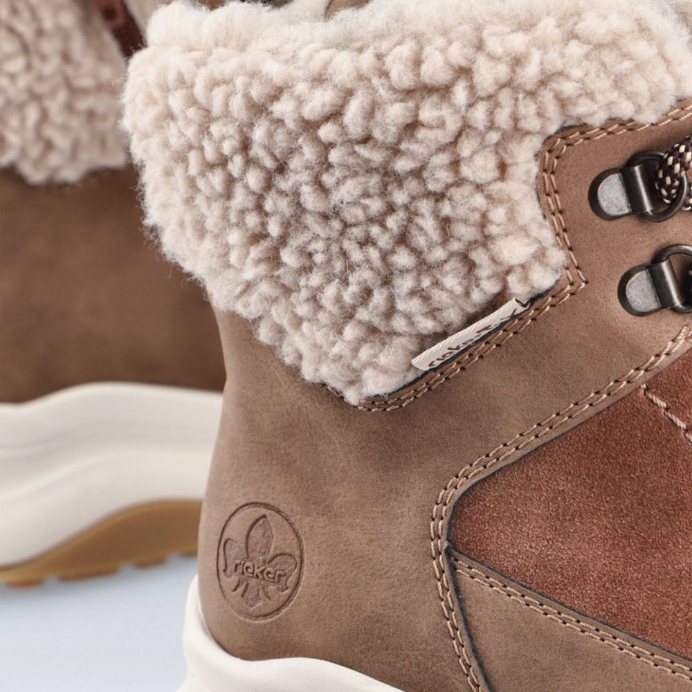 Difficile de faire plus douillet ! Ces bottes à lacets marron Rieker transformeront n'importe quelle journée d'hiver en une aventure inoubliable. De plus, le laçage assure un ajustement parfait. Le col en fourrure sur la tige rafraîchit le design. Grâce à la semelle souple et ultra-légère, vos pieds profiteront d'un confort optimal à chaque pas. La surface déperlante des chaussures offre une protection optimale contre les intempéries et la semelle intérieure thermique protège du froid. Vos pieds resteront au chaud toute la journée grâce à la doublure douce et chaude. Tout en un : le top !