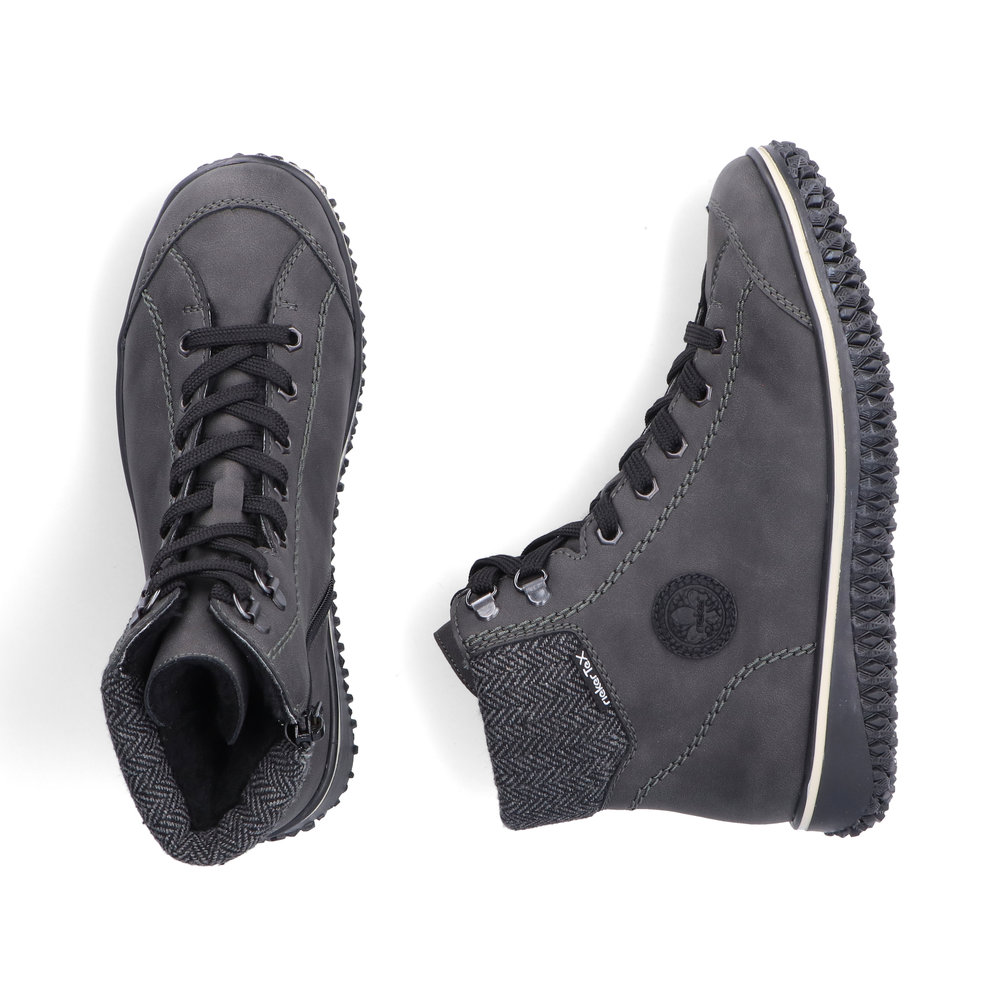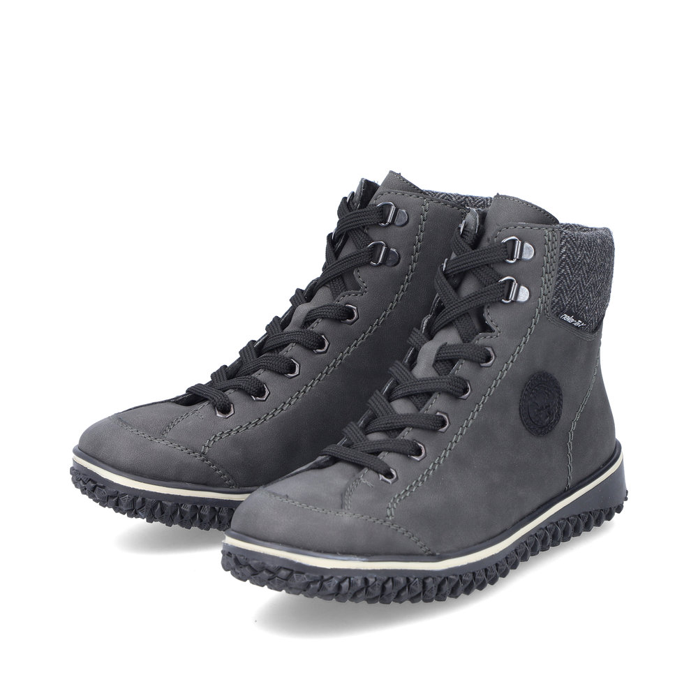 Avec nous, fini les pieds froids ! Ces bottines à lacets Rieker gris foncé vous garantissent une allure décontractée et décontractée. Le laçage complète la fermeture éclair et garantit un maintien optimal et un ajustement parfait. Le logo rond sur le côté ajoute une touche d'originalité. La semelle adhérente offre une bonne adhérence. L'association de la membrane RiekerTEX déperlante et d'une doublure chaude et confortable vous assure des pieds au chaud et au sec par tous les temps. Tout en un : le top !