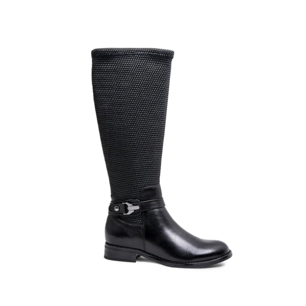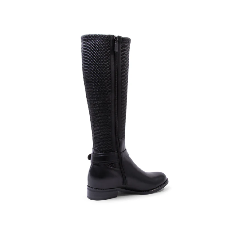 Style et confort impeccables réunis dans cette botte d’inspiration équestre ! La jambe extensible magnifiquement texturée s’adapte à la silhouette et peut accueillir un mollet plus généreux. Boucle latérale attrayante et fermeture éclair intérieure pour un enfilage et un retrait faciles.