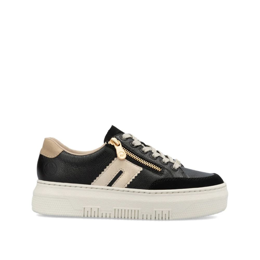 soldesHomme souriant tenant plusieurs paires de chaussures.